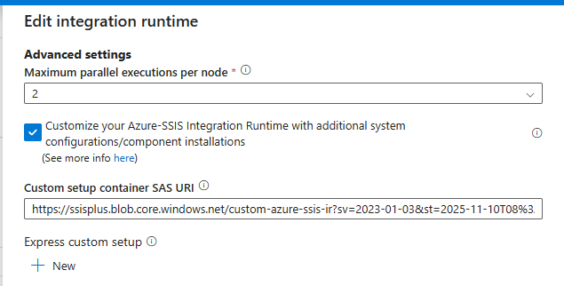 How to setup a new SSIS IR with SSIS+ via the Azure web UI