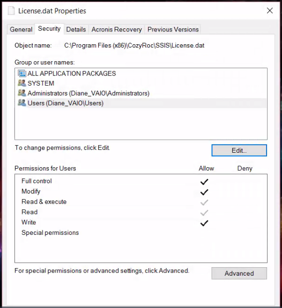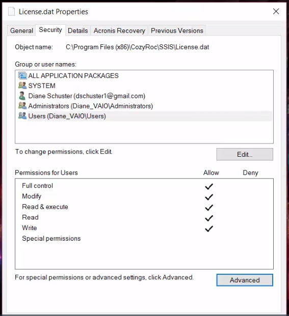 Figure 04 - License.dat Properties (Parent Permissions)