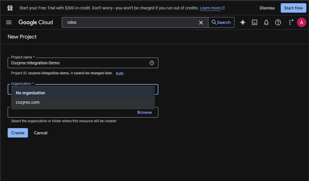 Projects under an organization inherit IAM Access permissions. If you proceed without an organization, no default values are set, but they can be changed later.